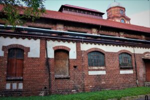 Budynek prowadzący do zakładu powstał około 1905 roku. Gmach nazywany budynkiem sali zbornej widać z ulicy, przy której znajduje się kopalnia Bielszowice. Wieńczy go wieża zegarowa nakryta miedzianym dachem w kształcie pruskiego hełmu.