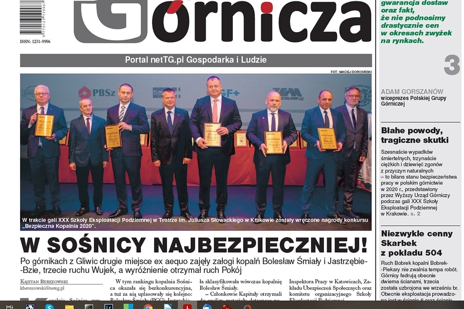 - Po górnikach z Gliwic drugie miejsce ex aequo zajęły załogi kopalń Bolesław Śmiały i Jastrzębie-Bzie, trzecie ruchu Wujek, a wyróżnienie otrzymał ruch Pokój – pisze red. Kajetan Berezowski w tekście pt. W Sośnicy najbezpieczniej. Opisuje wyniki tegorocznego konkursu Bezpieczna Kopalnia 2020.