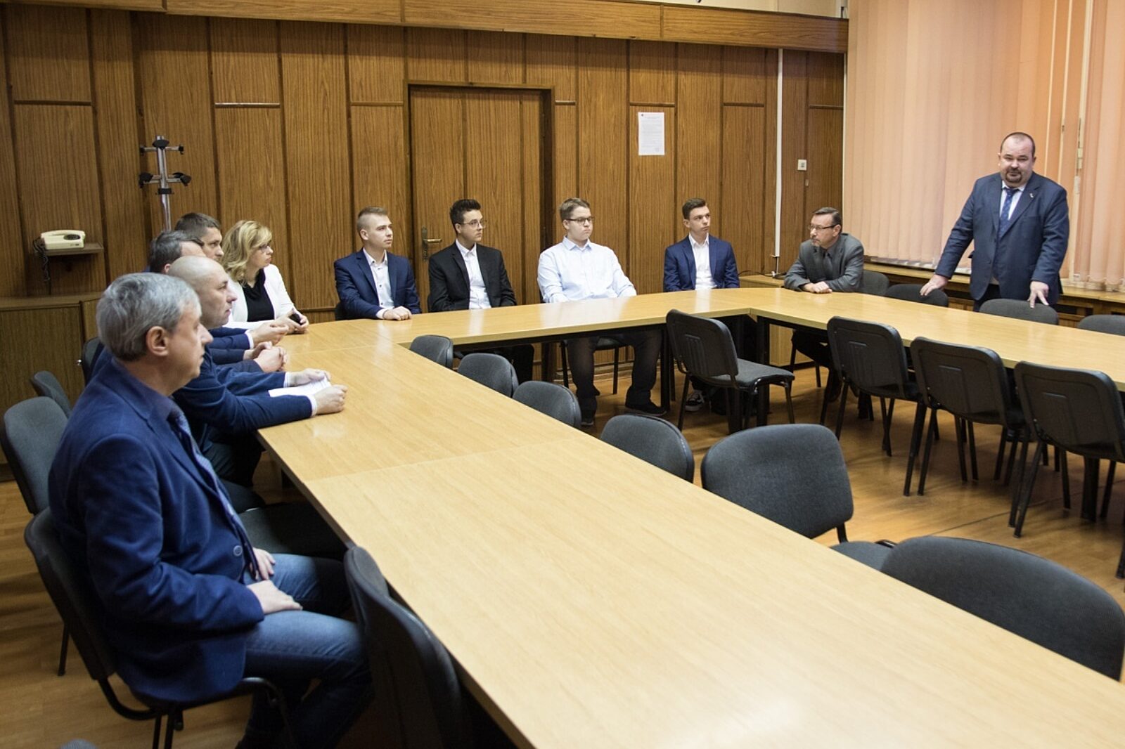 Laureaci konkursu "Bezpieczny skok z bhp do górnictwa" z opiekunami oraz z organizatorami przedsięwzięcia