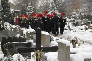 Po mszy św., prowadzony przez Górniczą Orkiestrę Dętą "Bytom" kopalni Bobrek pochód ruszył ul. ks. Jerzego Popiełuszki na pobliski cmentarz, aby pod krzyżem złożyć kwiaty i pomodlić się za zmarłych kolegów, górników, którzy w kopalniach oddali życie.