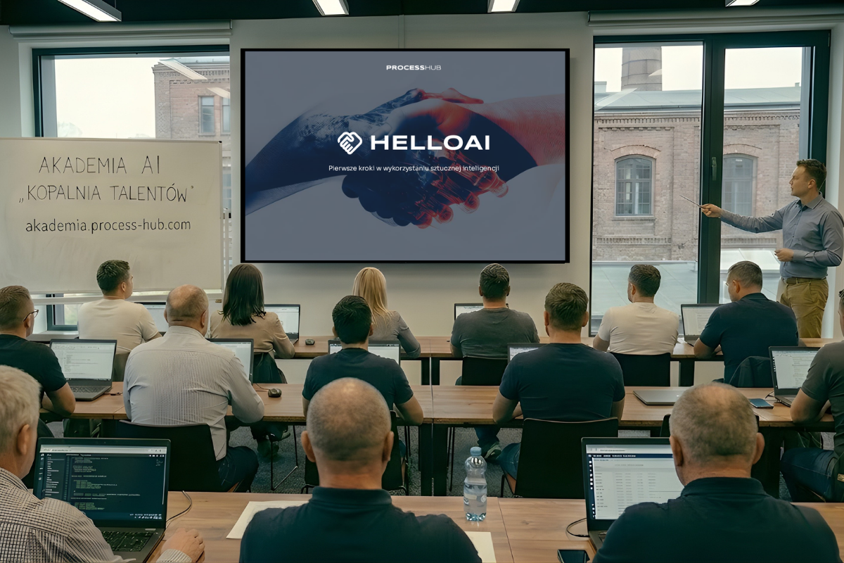 Akademia AI „Kopalnia Talentów" prowadzona przez Process Hub to 12-tygodniowy program zaprojektowany z myślą o pracownikach z regionów górniczych. Łącznie 120 godzin praktyk i warsztatów - zajęcia stacjonarne w Katowicach plus sesje online przez internet. Do wyboru tryb weekendowy albo popołudniowy, więc da się to pogodzić z innymi obowiązkami.