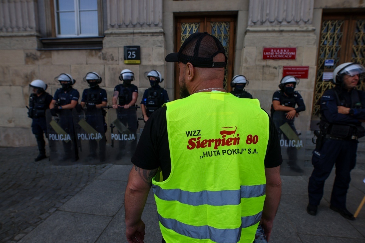 Górnicy i hutnicy protestują w Katowicach: Będziemy rozmawiać już tylko z Donaldem Tuskiem