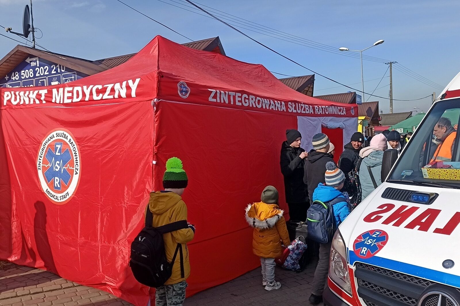 Górnicy z Polskiej Grupy Górniczej pomagają ukraińskim uchodźcom tuż przy granicy w Korczowej