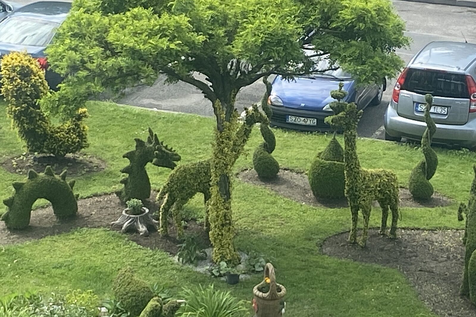 Górniczy emeryci z Żor wyrzeźbili między blokami niezwykły ogród