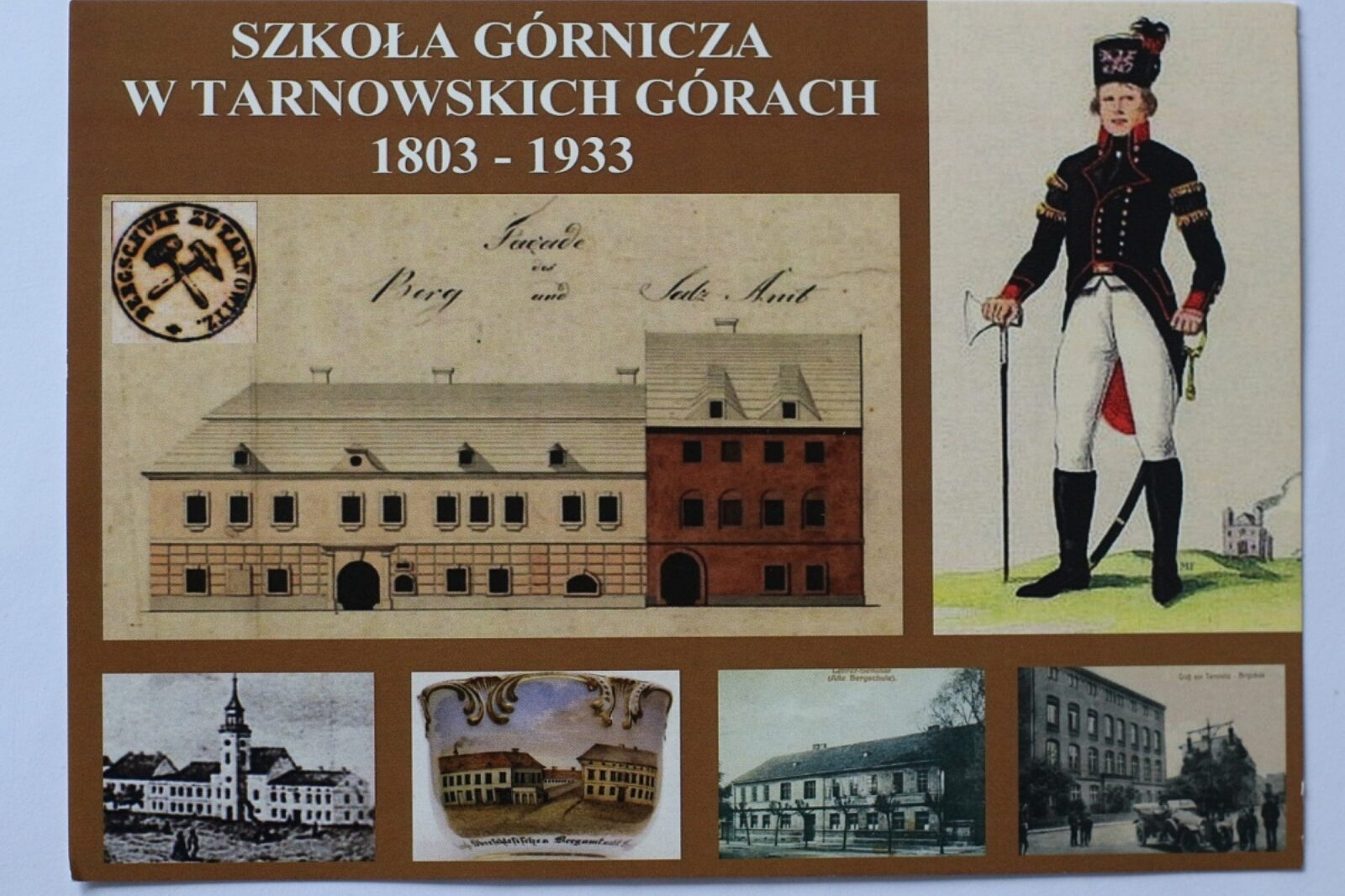 Widokówka upamiętniająca tarnogórską szkołę górniczą
