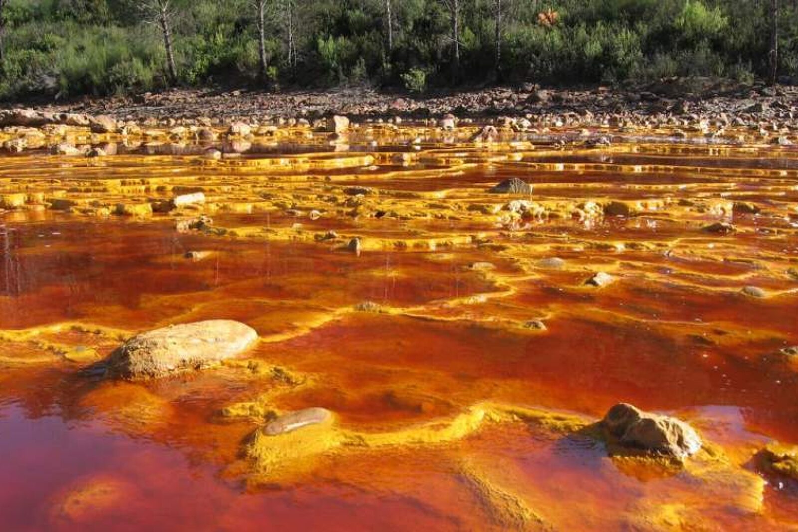 Z gór Sierra Nevada w południowej Hiszpanii (Andaluzja) bierze swój początek rzeka Rio Tinto. Nie jest ona wielka i ma zaledwie ok. 100 km długości. W niektórych miejscach przypomina ona górski potok. Płynie wzdłuż jednego z największych złóż pirytów (siarczków miedzi) na świecie. Występują tu też siarczki żelaza. Utleniają się one na powierzchni i rozpuszczone w wodzie nadają jej intensywny kolor czerwony - stąd też nazwa, po polsku: Rzeka Czeerwona. Chociaż bywa i niebieska wskutek rozpuszczających się tlenków miedzi.