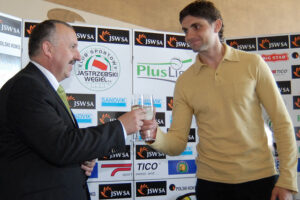 Zdzisław Grodecki przekazał Pawłowi Abramowowi koszulę z numerem Jastrzębskiego Węgla