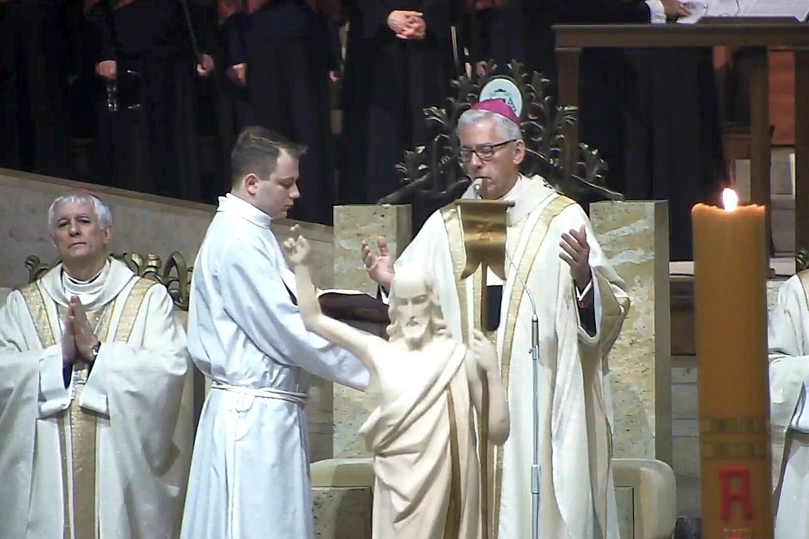 W homilii, nawiązując do czytania liturgicznego z apokaliptyczną wizją z Księgi Objawienia św. Jana arcybiskup podkreślił, że "działanie smoka przeciwko Niewieście trwa" i przypomniał fakty prześladowania chrześcijan na świecie, w tym ostatni zamach terrorystyczny w niedzielę wielkanocną na Sri Lance. Przywołał Janowe znaki świątyni, arki i Niewiasty, które symbolizują Kościół Chrystusa. Dzięki zachowaniu wierności, potwierdzanej krwią męczenników, ukaże się on w chwale, gdy nadejdzie koniec historii ludzkiej.