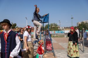 Głównym punktem tegorocznego Święta Rozbarku była próba pobicia rekordu Polski w liczbie osób przebranych w stroje ludowe. Nie da się ukryć, pogoda dopisała, a nawet była za dobra – wszyscy uczestnicy wydarzenia szukali cienia.