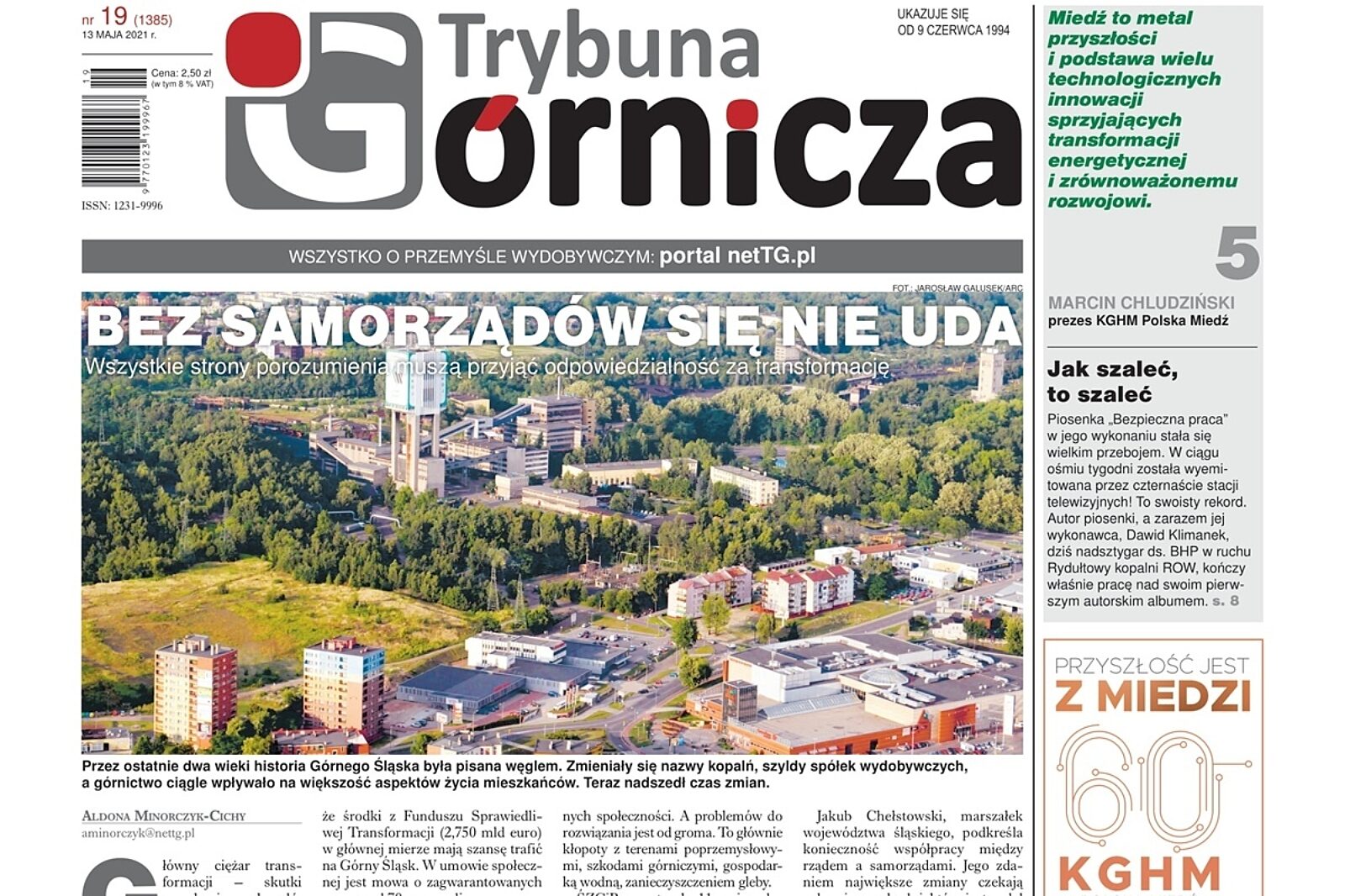 Ukazał się nowy numer Górniczej (19). Na 1 stronie Aldona Minorczyk Cichy pisze o transformacji górnictwa. Skutki zamykania kopalń, konieczność przygotowania terenów pod nowe inwestycje, które dadzą nowe miejsca pracy spadnie na barki samorządów.