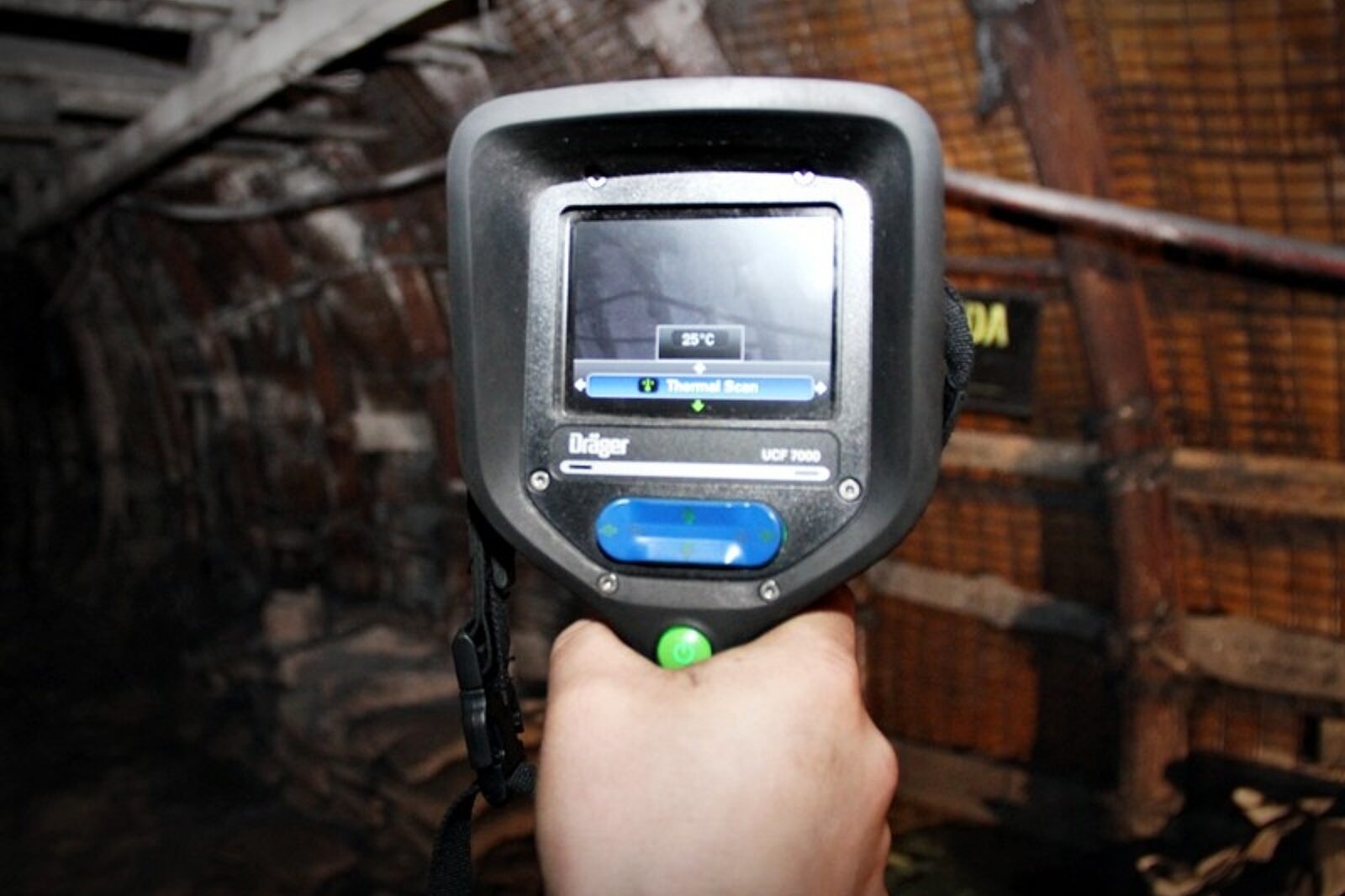 - Pierwsze takie urządzenia mieliśmy około 2002 roku. W tej chwili dysponujemy jednym z najnowszych modeli kamery termowizyjnej. Umożliwia nam ona pomiary, ale również nagrywanie i robienie zdjęć, które są później doskonałym materiałem do wszelkiego rodzaju analiz. W tej chwili w kopalni Murcki-Staszic dysponujemy czterema takimi kamerami. Trzy znajdują się w ruchu Staszic, a jedna w ruchu Boże Dary - mówi Robert Czenczek, kierownik Kopalnianej Stacji Ratownictwa Górniczego kopalni Staszic, prezentując możliwości sprzętu na poziomie 720 kopalni Murcki-Staszic ruch Staszic, należącej do Katowickiego Holdingu Węglowego.