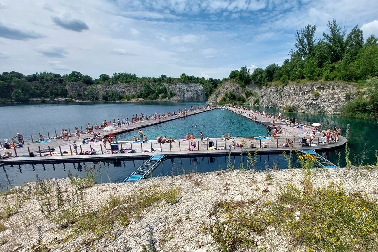 Krakowski kamieniołom zyskał dzięki miejskiej inwestycji spory rozgłos. Eksploatacja skały wapiennej ustała tam pod koniec XX w., a wyrobisko napełniło się wodą. Miejsce upodobali sobie nurkowie i spacerowicze. Kilka lat temu zaczęto realizować koncepcję strzeżonego kąpieliska w formie przyczepionych do brzegów podestów i wypłyconych basenów, unoszących się na tafli wody. Zdecydowano, że wstęp będzie bezpłatny.