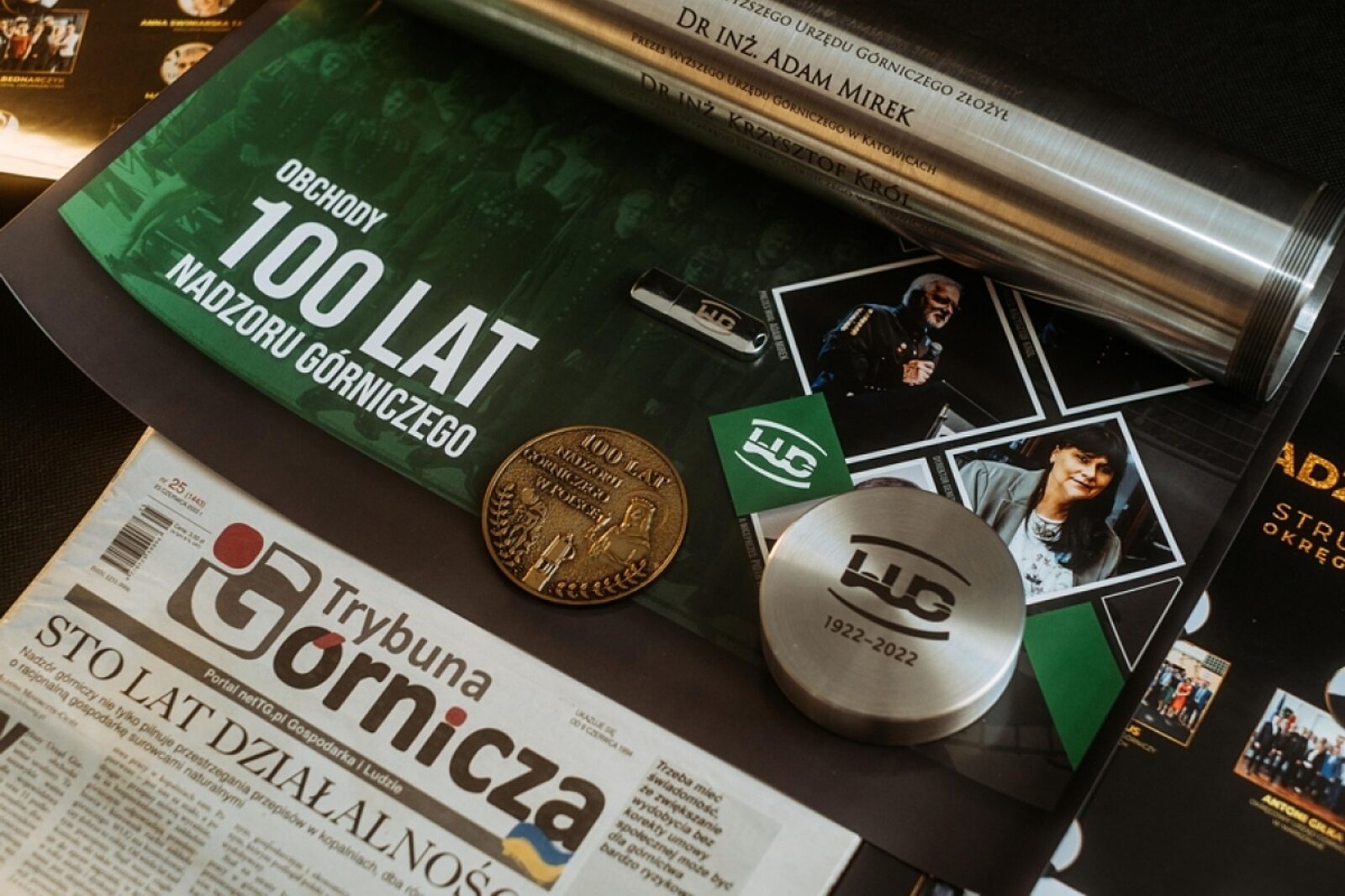 W kapsule znajdują się fotografie wszystkich dotychczasowych prezesów WUG oraz obecnych dyrektorów poszczególnych departamentów, zdjęcia z uroczystej akademii jubileuszowej, a także pamiątkowe wydanie Trybuny Górniczej