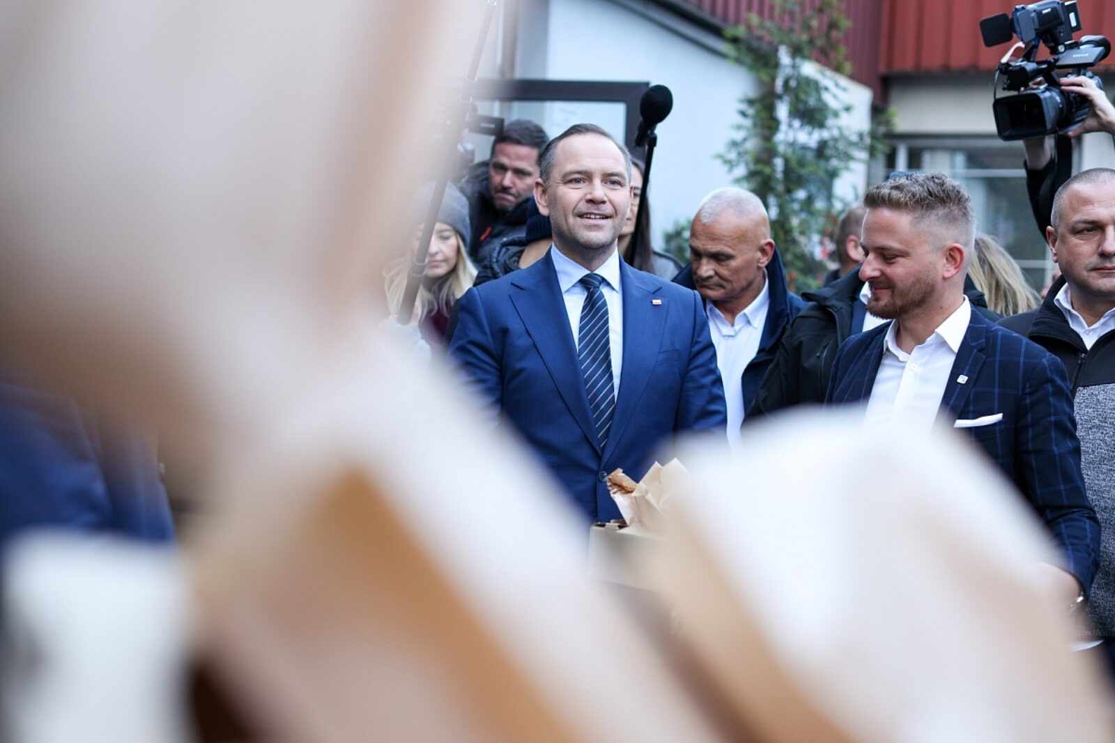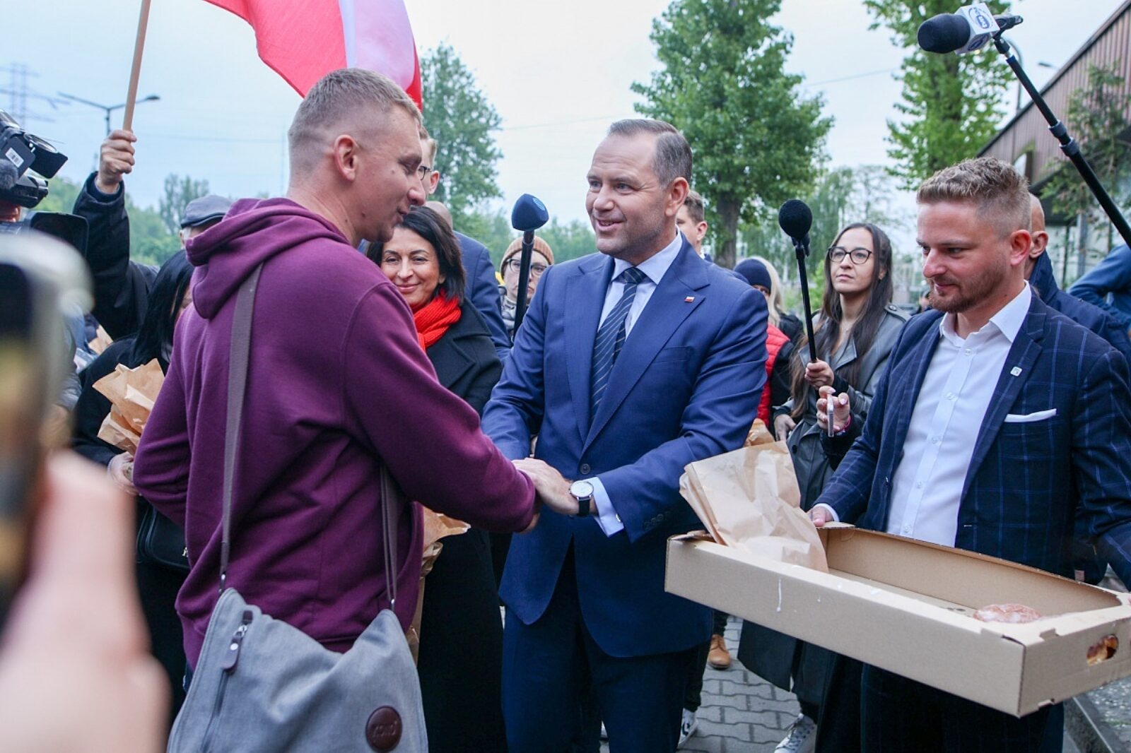 Karol Nawrocki w ostatni dzień kampanii rozdawał drożdżówki górnikom z KWK Mysłowice-Wesoła