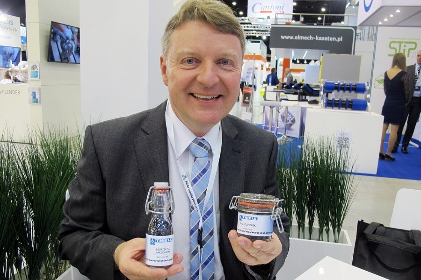 Zdziwionych uczestników targów, którzy posiedli owe produkty uboczne firmy Thiele, w tajemnicy informujemy, że tak naprawdę szklane opakowania zawierają sól i cukier. Zachęcamy do skosztowania!