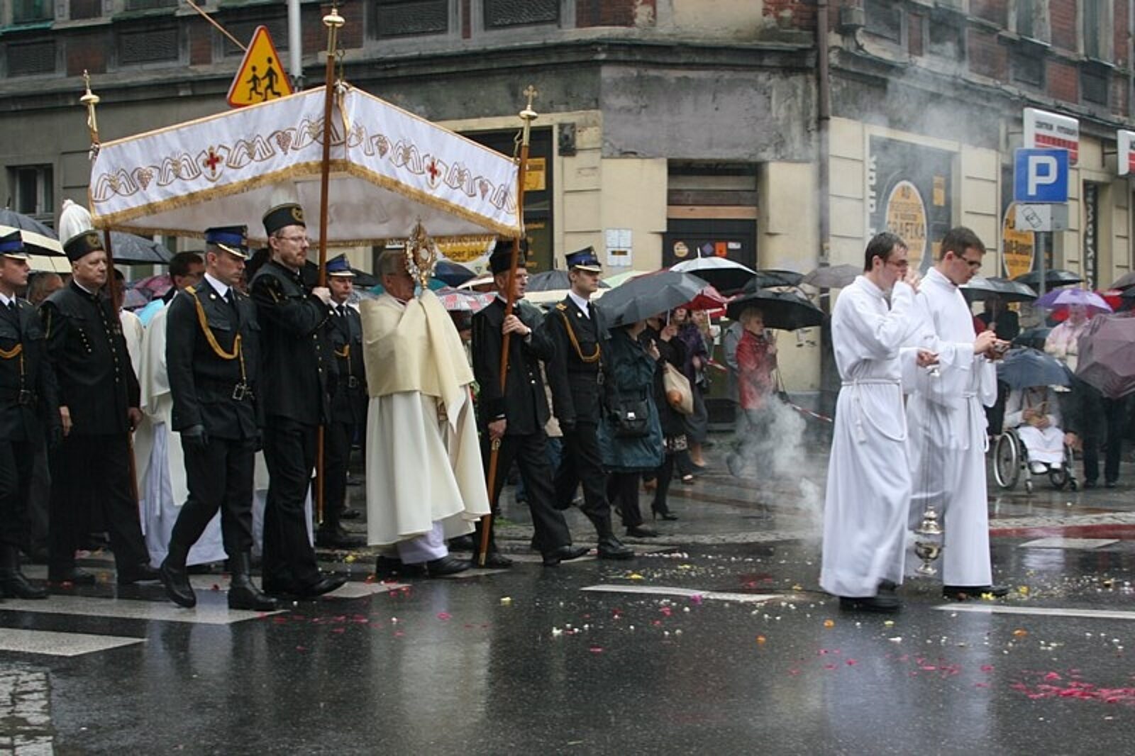Katowice: Boże Ciało w strugach deszczu