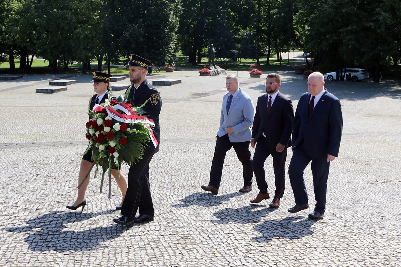Katowice: Kwiaty pod pomnikiem w rocznicę wybuchu dwóch powstań