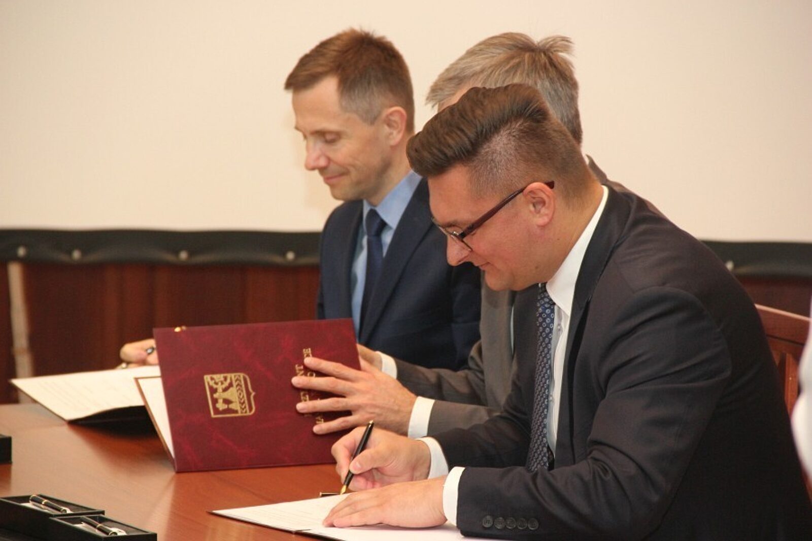 W podpisaniu umowy na budowę pierwszego w Polsce osiedla w programie Mieszkanie Plus uczestniczyli m.in. wiceminister Grzegorz Tobiszowski, prezydent Marcin Krupa oraz przedstawiciele BGKN Mirosław Pawlak i Grzegorz Muszyński