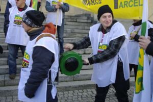Jak zwykle przy tego rodzaju wydarzeniach nie obyło się bez petard, trąbienia i wycia alarmowych syren. Związkowcy nie tylko w Polsce, ale i w całej Europie uważają, że nie da się wyjść z kryzysu kosztem ograniczania praw pracowniczych, zatrudniania ludzi na umowach śmieciowych i ograniczania zabezpieczeń socjalnych pogłębiających nierówności społeczne. Te i inne zastrzeżenia znalazły się w treści związkowej petycji do premiera, którą w Katowicach Henryk Moskwa, szef wojewódzkiego OPZZ wręczył wicewojewodzie Spyrze.