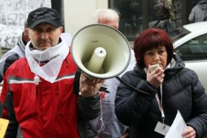 W czwartek (2 lutego) pod katowickim magistratem zorganizowano pikietę w obronie szpitala w Murckach. Zgodnie z planami włodarzy miasta ma być on połączony Górnośląskim Centrum Medycznym w Ochojcu. Na takie rozwiązanie nie zgadzają się pracownicy szpitala oraz mieszkańcy Murcek. Swój sprzeciw głośno wyrazili w czasie manifestacji, na której nie zabrakło transparentów oraz rekwizytów. Naprzeciwko wejścia do budynku, w którym urzęduje prezydent Katowic Marcin Krupa pojawiło się szpitalne łóżko.