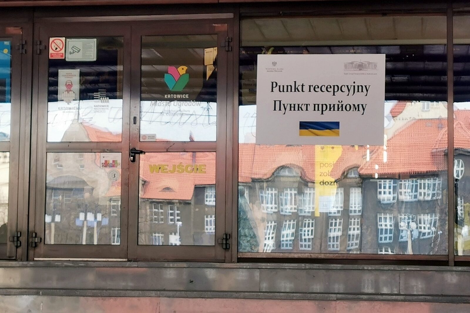Jeden z punktów recepcyjnych dla uchodźców z Ukrainy zorganizowany jest w centrum kultury przy Placu Sejmu Śląskiego
