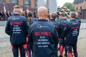 Przed startem biegacze oraz licznie przybyłe delagacje złożył kwiaty i znicze pod Krzyżem-Pomnikiem. Nie zabrakło w tym gronie uczniów z pobliskiej Szkoły Podstawowej nr 5 im. Dziewięciu z Wujka.
