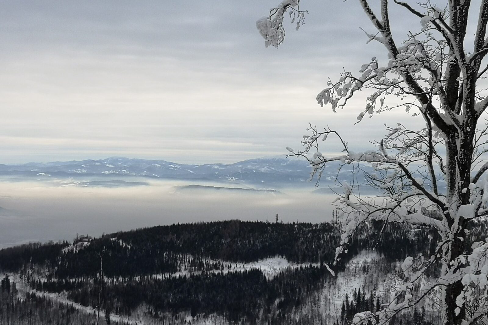 W mroźne i bezwietrzne dni smog jest przekleństwem także wielu górskich miejscowości. Na zdjęciu: widok z Szyndzielni na Kotlinę Żywiecką w minioną niedzielę