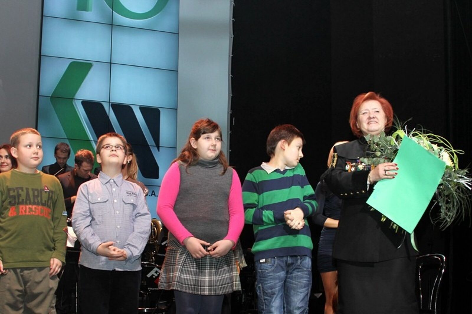 Na zakończenie koncertu jubileuszowego dzieci pracowników Kompanii, które przyszły na świat dokładnie 1 lutego 2003 r., kiedy została powołana do życia Kompania Węglowa, wręczyły prezes spółki Joannie Strzelec-Łobodzińskiej kwiaty oraz laurki z okazji 10-lecia