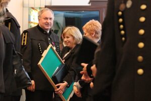 Po wystąpieniu pani prezes rozpoczęła się dekoracja pracowników. Jako pierwsze zostały przyznane odznaki "Zasłużony dla górnictwa RP", które z rąk Joanny Strzelec-Łobodzińskiej trafiły na mundury 18 osób.