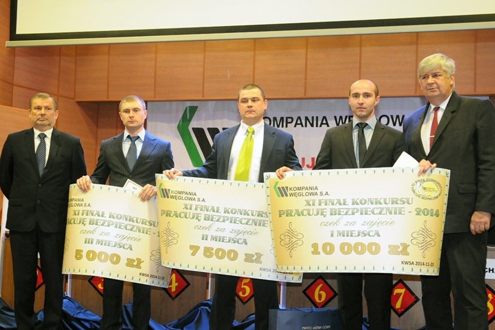 Najlepsi musieli wiedzieć m.in. jakie urządzenie przedstawione jest na zaprezentowanym zdjęciu, ile metrów wynosi maksymalna droga hamowania lokomotywy i jakie obowiązki pracownika wynikają z Kodeksu Pracy. W nagrodę za swoją wiedzę zwycięzca konkursu otrzymał czek na 10 tys. zł. Finaliści z miejsca drugiego i trzeciego dostali czeki na 7,5 tys. i 5 tys. zł. Nagrody wręczył wiceprezes Kompanii Węglowej Piotr Rykala.