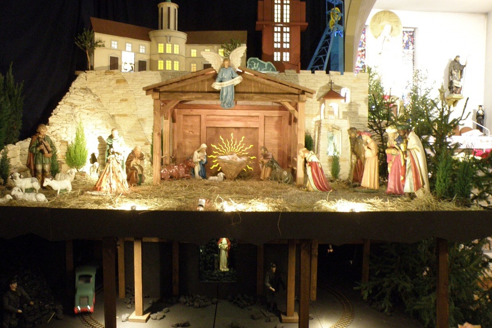 Na górze stajenka ze świętą rodziną, nad nią - dwie wieże szybowe po dawnej KWK Szombierki. Pod stajenką - górnicy fedrujący węgiel w chodniku kopalni, w którym kursuje kolejka elektryczna. Tak wygląda szopka bożonarodzeniowa w kościele pod wezwaniem Najświętszego Serca Pana Jezusa prowadzonym przez księży jezuitów w Bytomiu przy ul. Pułaskiego.