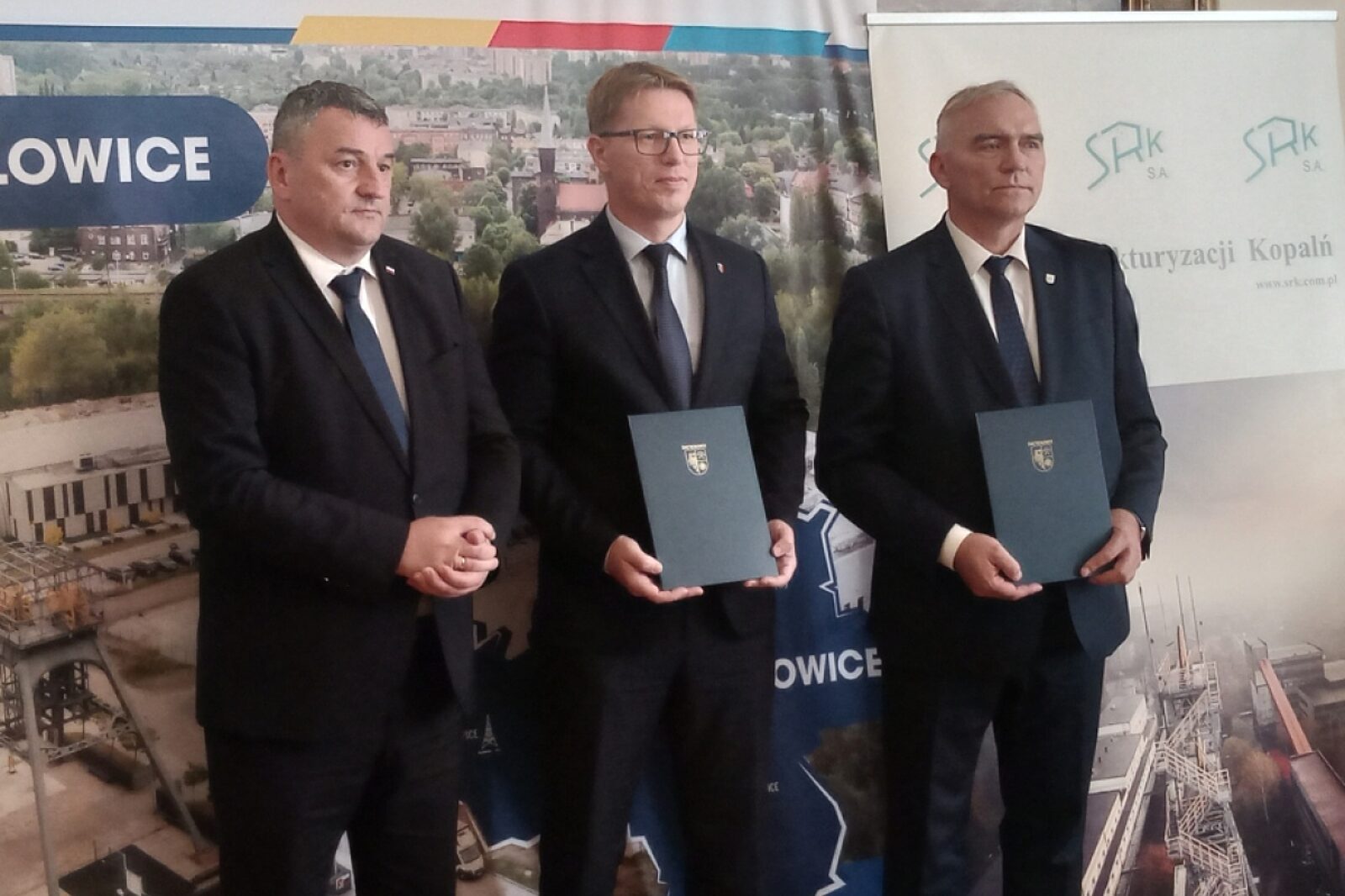 Dokument w obecności Marka Wesołego, wiceministra aktów państwowych (pierwszy z lewej) podpisali: Daniel Beger, prezydent Świętochłowic (w środku) oraz Janusz Smoliło, prezes zarządu SRK (pierwszy z prawej)