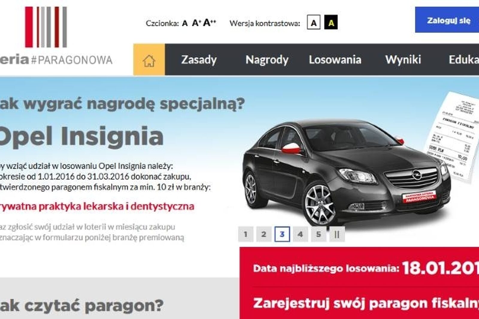 Według MF w najbliższym kwartale premiowane są paragony wydane przez prywatne praktyki lekarskie i dentystyczne: każdy, kto od stycznia do marca tego roku będzie zbierać paragony fiskalne z wizyt u lekarza i dentysty oraz zarejestruje je na stronie loterii, weźmie udział w losowaniu tego samochodu.