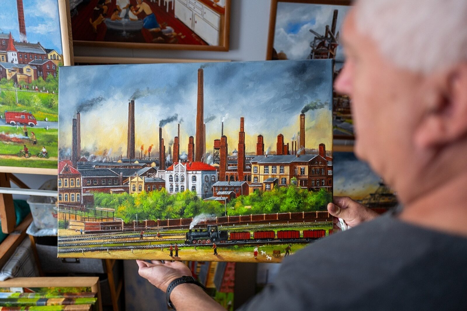 Marian Knapik, malarz amator z Katowic, chce zachować w swoich pracach magiczny Śląsk