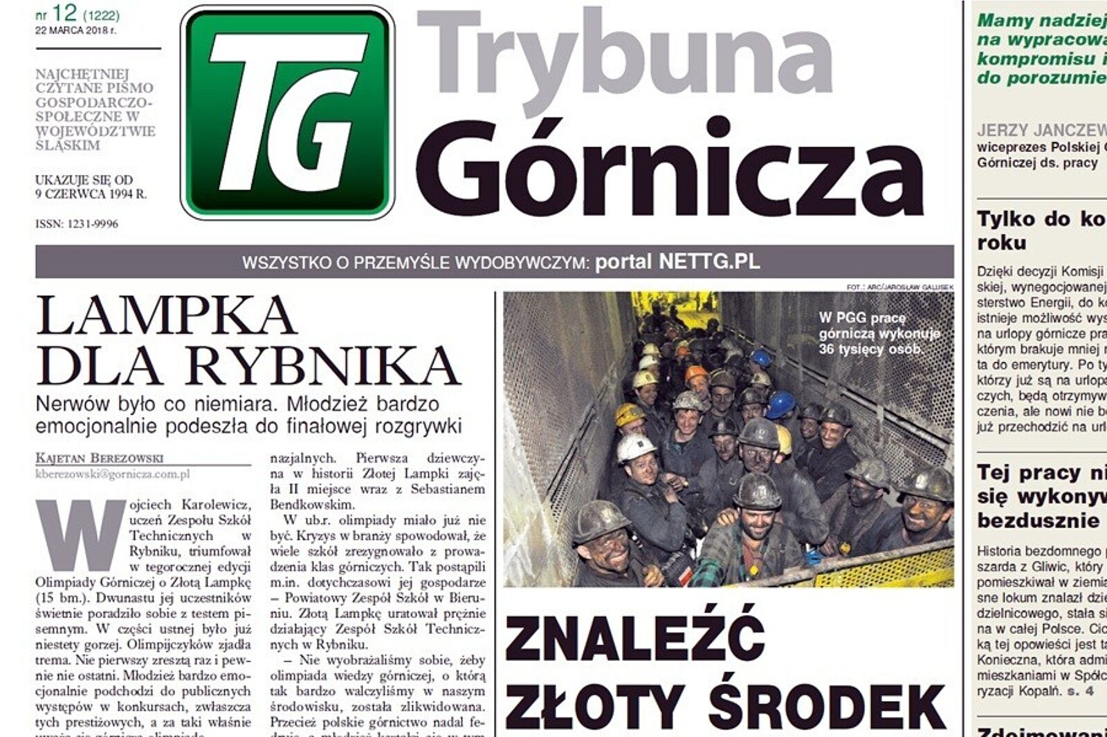 Zapraszamy do lektury! Spotkajmy się w czwartek i każdego dnia na portalu górniczym nettg.pl.
