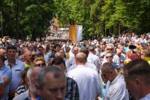Arcybiskup katowicki Adrian Galbas przyszedł z parafianami ze Świętochłowic-Chropaczowa, który też wygłosił słowo społeczne do wiernych. Mszę św. odprawił i homilię wygłosił prymas Polski abp Wojciech Polak