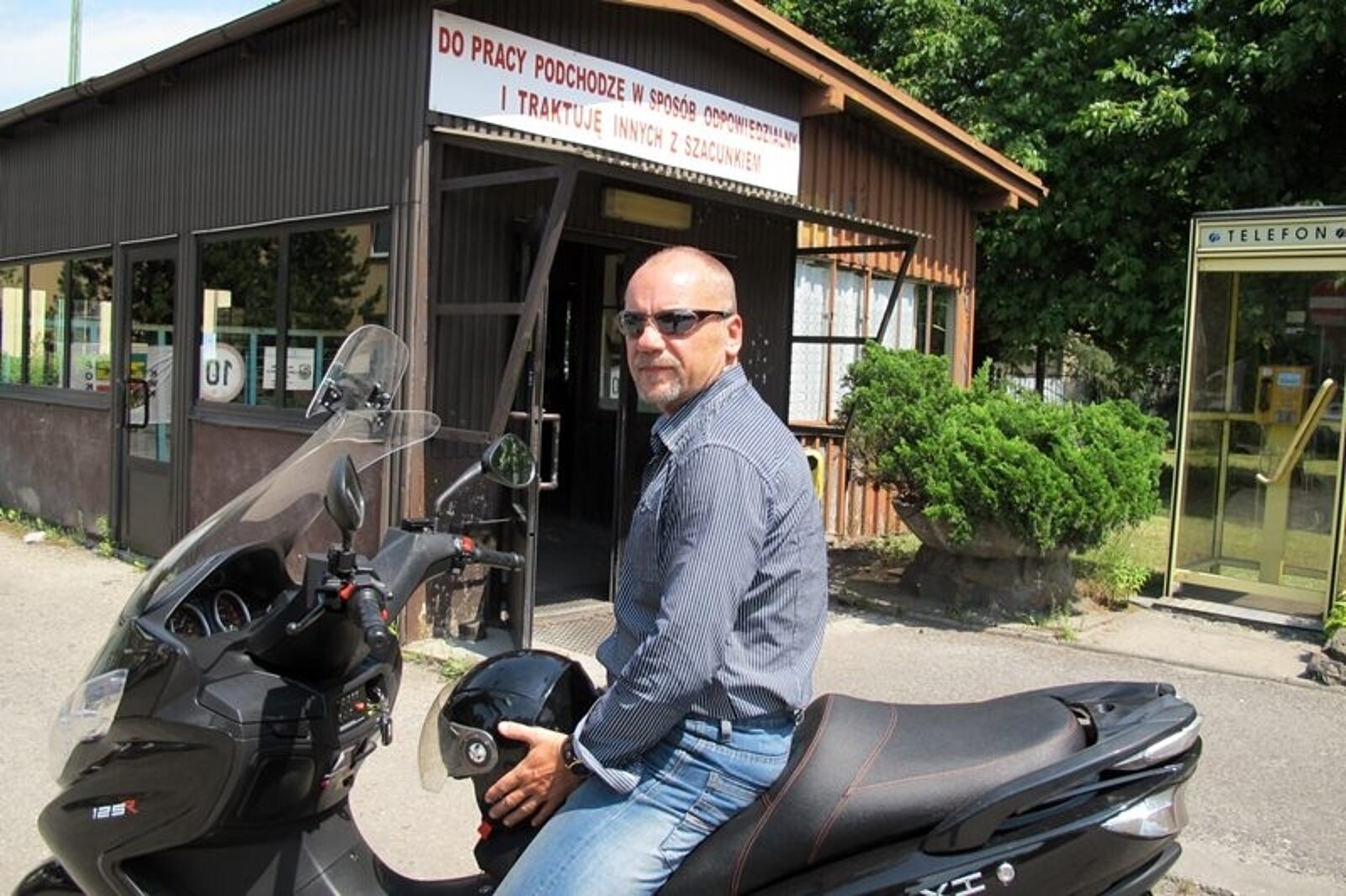 Marek Kala dojeżdża do pracy w kopalni Pokój motocyklem