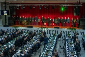 Podczas akademii barbórkowej głos zabrał także dyrektor kopalni Pniówek Zbigniew Czarnecki. – Ten rok jest dla nas szczególny, nasza kopalnia rozpoczęła działalność pół wieku temu, jest nie tylko miejscem pracy, ale i przestrzenią współtworzenia historii polskiego górnictwa. Przyszłość niesie przed nami nowe wyzwania. Polskie górnictwo, a z nim nasza kopalnia, funkcjonuje w nowych warunkach, które wymagają od nas elastyczności, odwagi i umiejętności dostosowania się do zmian. Jestem głęboko przekonany, że dzięki Waszemu zaangażowaniu, profesjonalizmowi będziemy umacniać pozycję Pniówka na mapie polskiego górnictwa – mówił dyrektor Zbigniew Czarnecki. – To, co wyróżnia naszą kopalnię, to Wy, ludzie, którzy każdego dnia udowadniają, że wspólnym wysiłkiem, doświadczeniem i zaangażowaniem można osiągnąć rzeczy wyjątkowe. Tworzymy jeden zgrany zespół, w którym każdy ma swoje niezastąpione miejsce. Nasze poświęcenie i codzienna praca to fundament, na którym opiera się nasza kopalnia. Każdy z Was wnosi coś niepowtarzalnego, dzięki czemu Pniówek nie jest tylko miejscem pracy, ale prawdziwą wspólnotą opartą na wzajemnym szacunku i współpracy – dodał.