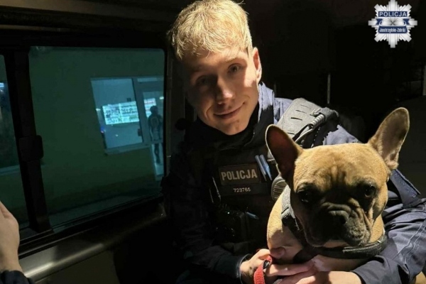 Policjanci pomogli psu, którego ktoś w nocy przywiązał do drzewa