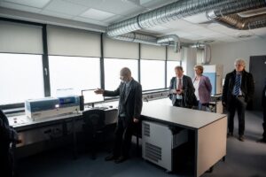 Po odsłonięciu tablicy zgromadzeni goście mieli możliwość zwiedzania nowych pomieszczeń Centrum, zapoznając się z wyposażeniem i możliwościami badawczymi Laboratorium Modelowania Inżynierskiego, Laboratorium Geofizyki Inżynierskiej, wreszcie największego z nich – Laboratorium Kompleksowych Badań Odpadów i Biomasy, ze stanowiskami do badań biomasy, składu fazowego i ziarnowego oraz składu chemicznego.