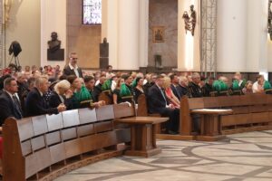 Abp Skworc powitał zgromadzonych w katedrze Chrystusa Króla parlamentarzystów, przedstawicieli władz rządowych (z minister rodziny, pracy i polityki społecznej Bożeną Borys-Szopą, wiceministrem energii Adamem Gawędą), samorządowych oraz zarząd PGG z prezesem Tomaszem Rogalą na czele i podkreślił: