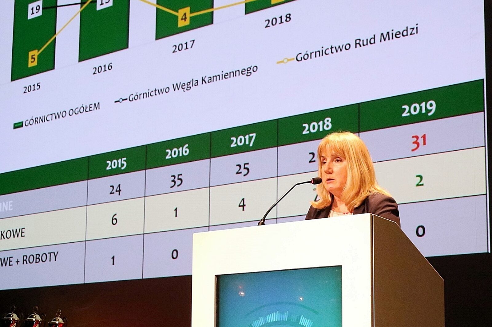Raport o stanie bezpieczeństwa w polskim górnictwie przedstawiła Alicja Stefaniak, dyrektor Departamentu Warunków Pracy i Szkolenia w Wyższym Urzędzie Górniczym