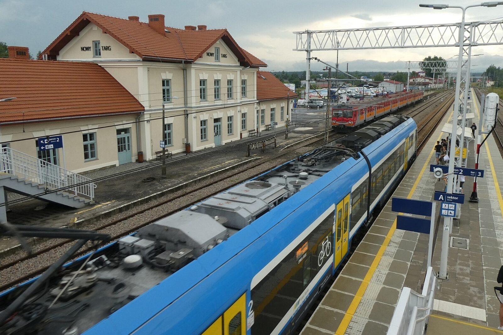 Pociąg Kolei Śląskich Sprinter Ornak na stacji Nowy Targ