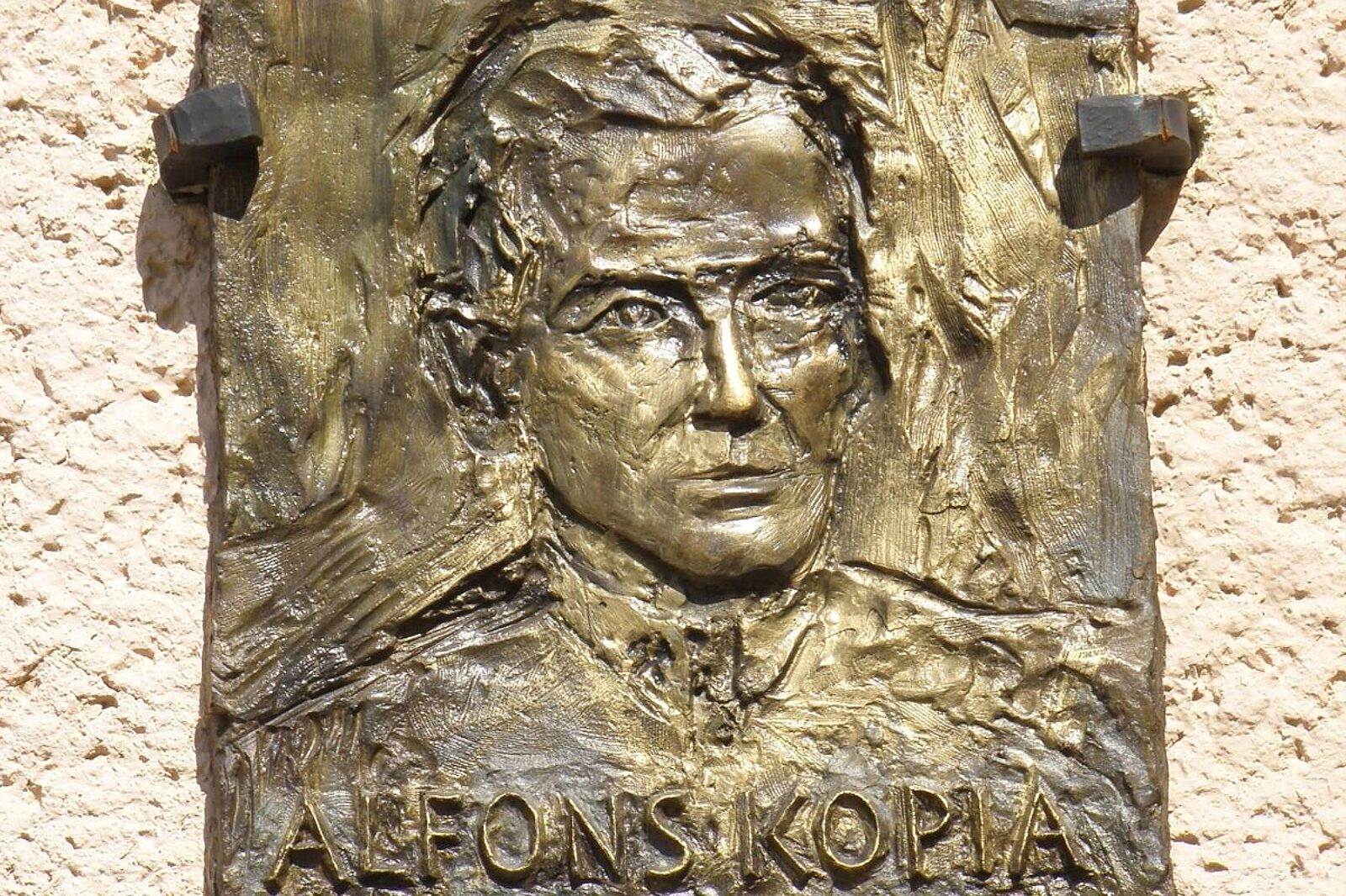 Druga tablica upamiętniająca Alfonsa Kopię na elewacji budynku Zabytkowej Kopalni Srebra w Tarnowskich Górach