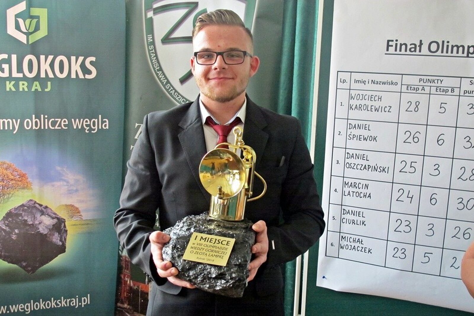 Wojciech Karolewicz, reprezentant Zespołu Szkół Technicznych w Rybniku, triumfował w w Olimpiadzie Wiedzy Górniczej i zdobył Złotą Lampkę. Obok niego na podium stanęli również Daniel Śpiewok (II miejsce) z Zespołu Szkół Ogólnokształcących w Pawłowicach i Marcin Latocha (III miejsce) z Powiatowego Centrum Kształcenia Zawodowego i ustawicznego w Wodzisławiu Śląskim. Finał Olimpiady odbył się w czwartek, 15 marca, w ZST w Rybniku.