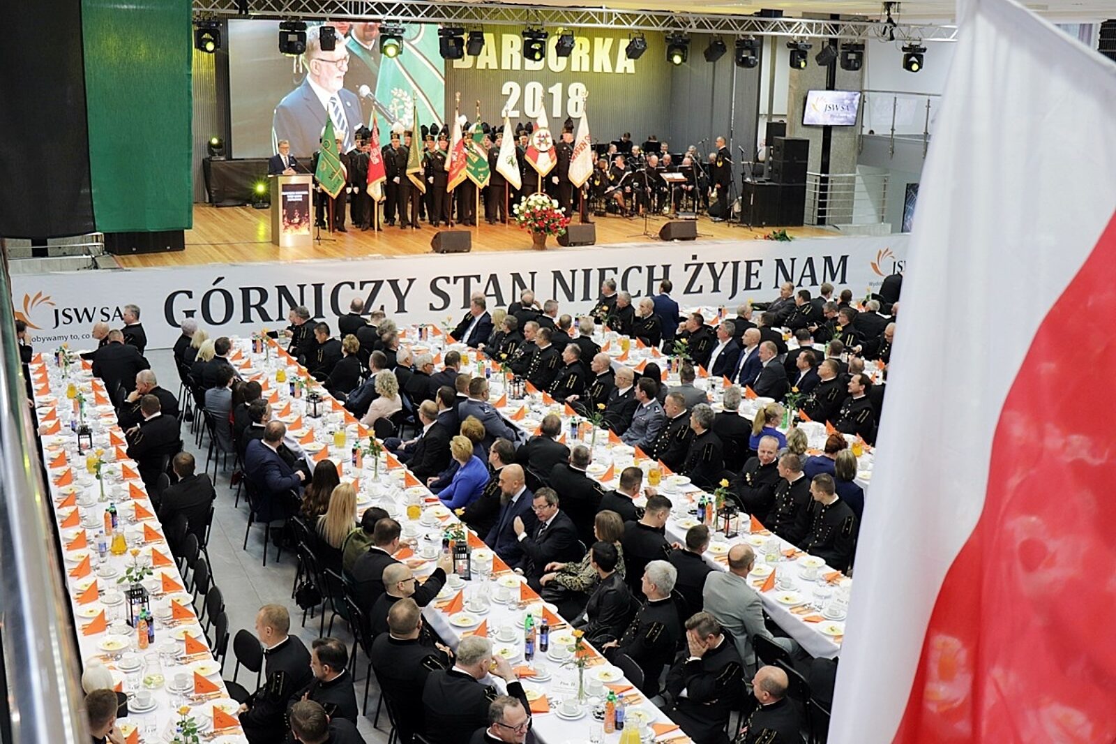 Na centralnej akademii w kopalni Pniówek górnicy JSW uczcili Barbórkę w roku stulecia niepodległości RP i 25-lecia jastrzębskiej spółki