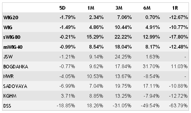 Niepokoi jednak niezdolność WIG20 do przełamania szczytów z końca sierpnia, zwłaszcza w kontekście prognoz Komisji Europejskiej, przyjmujących że Polska będzie miała 2012 roku najwyższe tempo wzrostu w całej Unii Europejskiej. Spółki małe i średnie radzą sobie zdecydowanie lepiej. W ciągu ostatniego miesiąca mWIG40 zyskał 8,5 proc. W przypadku sWIG80 było to aż 15,3 proc.. W tym okresie korzystną inwestycją były spółki surowcowe. Silnie zwyżkowały NWR, JSW oraz BOGDANKA. JSW wyrównał tym samym poziomy z końca sierpnia 2011 r., nadal jednak by osiągnąć poziomy z debiutu jej akcje muszą wzrosnąć o ponad 30 proc.