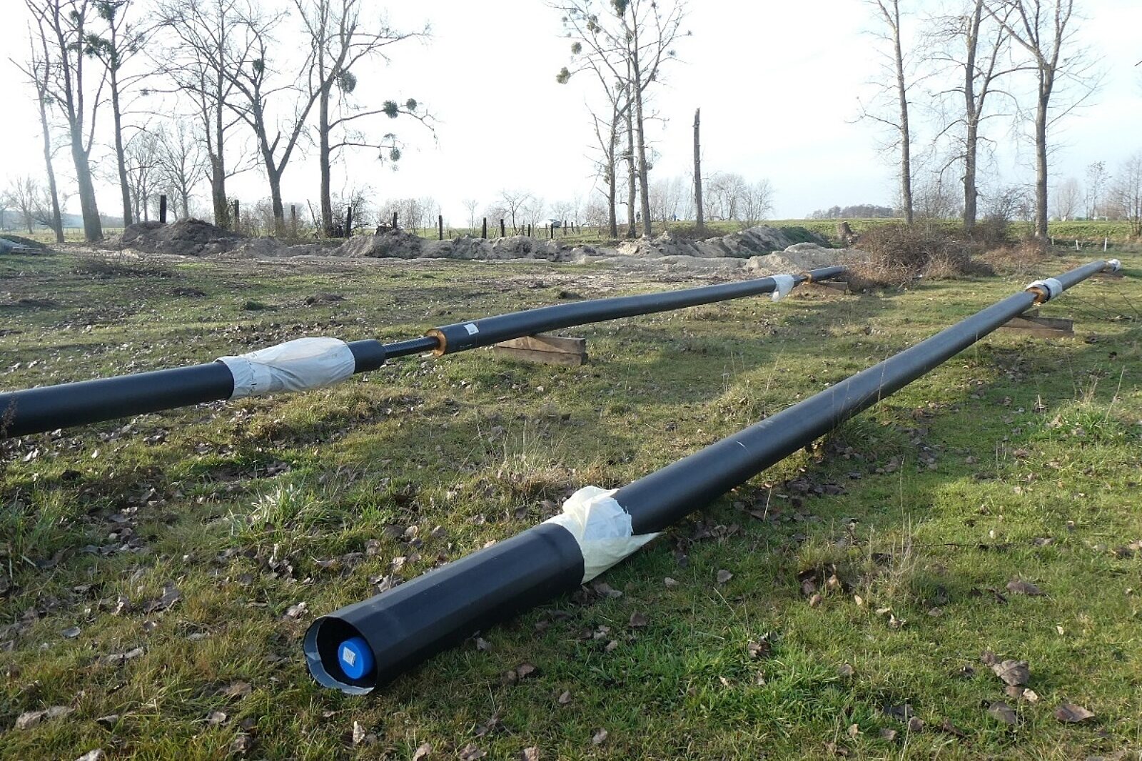 Polskie Górnictwo Naftowe i Gazownictwo nie zdecydowało się ani na budowę bocznicy kolejowej do Słońska w celu odbioru ropy, ani też na transportowanie jej spod odwiertów ciężarówkami. Postanowiono zbudować rurociąg płynu złożowego wraz z kablem światłowodowym, które połączyły Ośrodek Grupowy Górzyca we wsi Ługi Górzyckie z odległymi o kilkanaście kilometrów odwiertami na złożu Kamień Mały. Budowę rurociągu przeprowadziła poznańska spółka ZRUG. W trakcie towarzyszących budowie prac archeologicznych natrafiono na znaleziska, które przekazane zostały do Muzeum Twierdzy Kostrzyn w Kostrzynie nad Odrą.