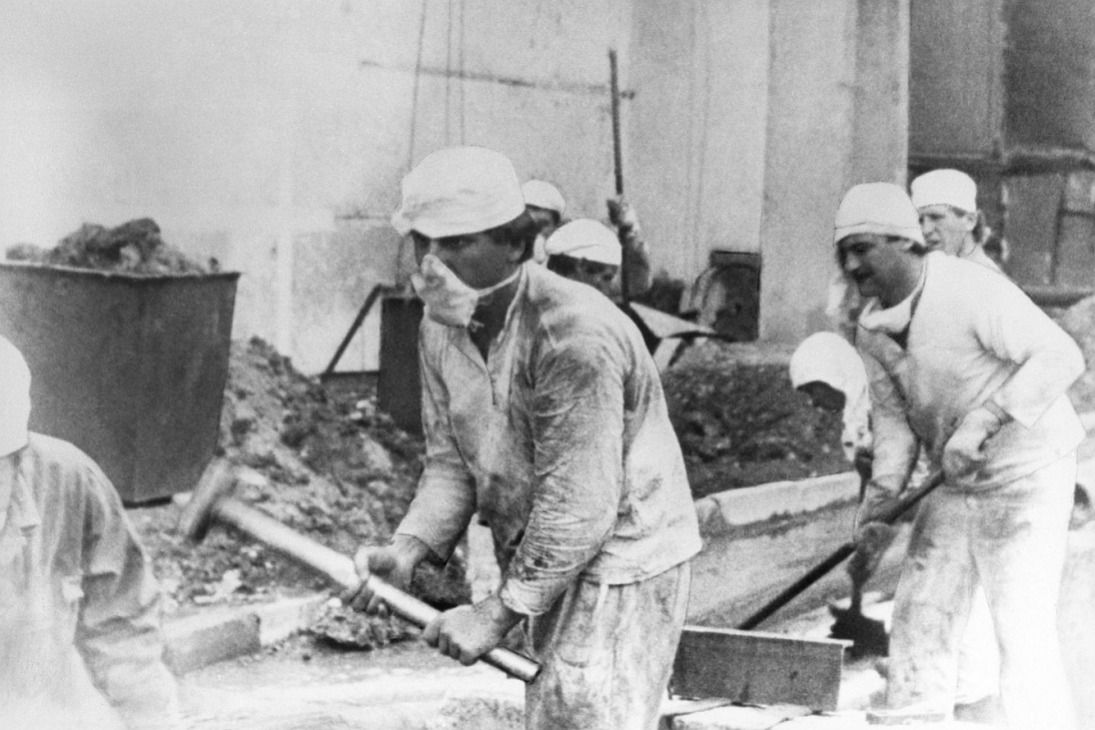 Wśród ok. 800 tys. tzw. likwidatorów, czyli osób usuwających skutki katastrofy w elektrowni atomowej w Czarnobylu, była również grupa ok. 450 górników. Mieli za zadanie wydrążyć tunel i wybudować podziemną "betonową poduszkę" pod zniszczonym reaktorem. Prawdopodobnie jedna czwarta spośród nich zmarła w ciągu kilku następnych lat.