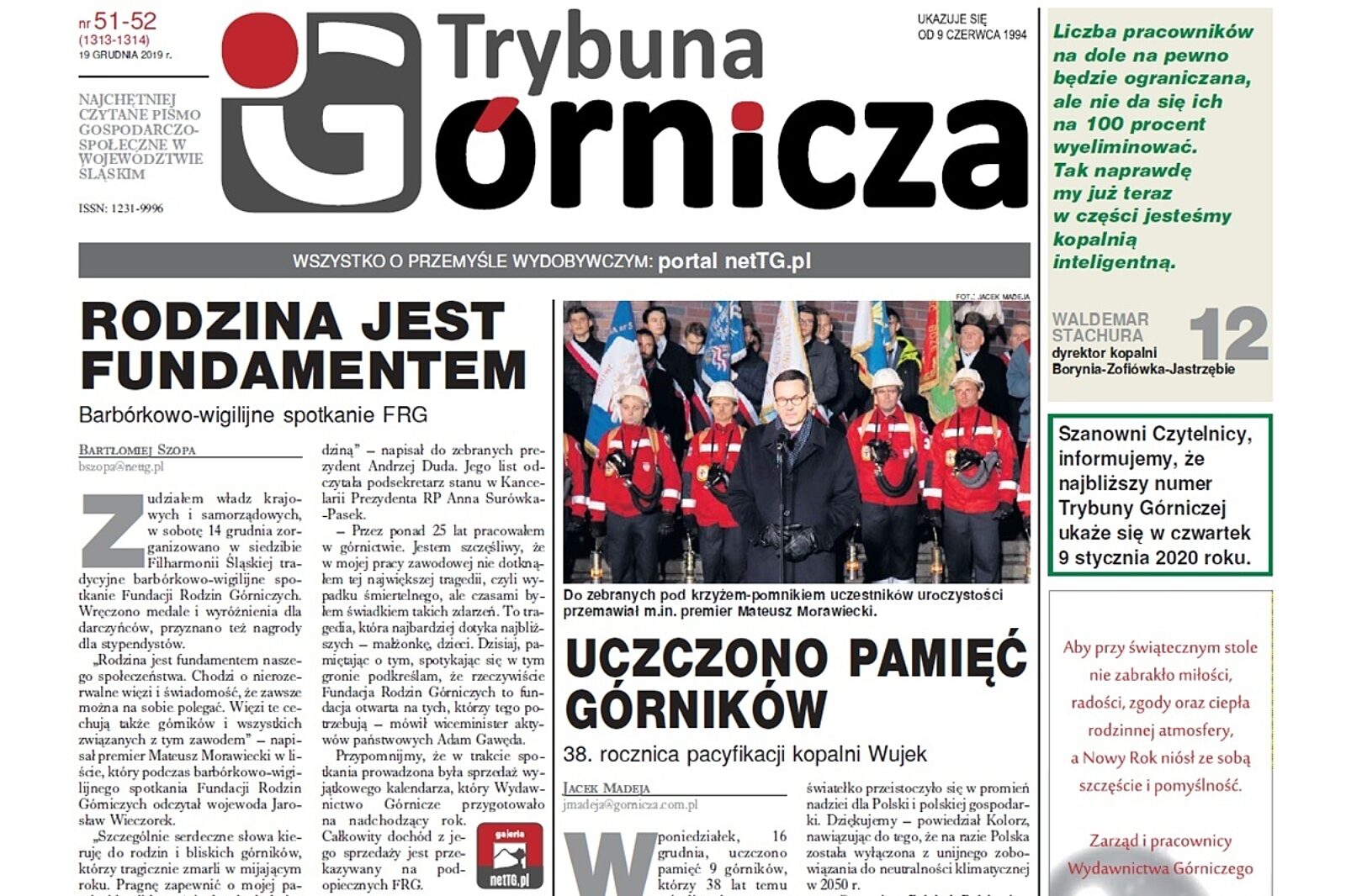 W świątecznym wydaniu naszego tygodnika, które jest jednocześnie ostatnim w tym roku, podsumowujemy też oczywiście najważniejsze wydarzenia branży górniczej mijającego tygodnia.